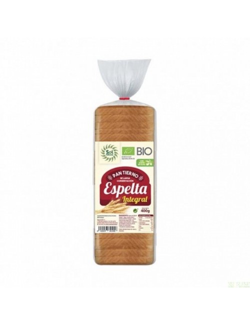 Ingredientes: Harina de ESPELTA Integral *, Agua, Levadura Madre * (Harina de ESPELTA Integral * y Agua), Aceite de Oliva Virgen Extra * 3%, Levadura, Harina de Malta * (CEBADA *), Sal, Emulgente (Lecitina de Girasol). Tratado con Alcohol Etílico *.