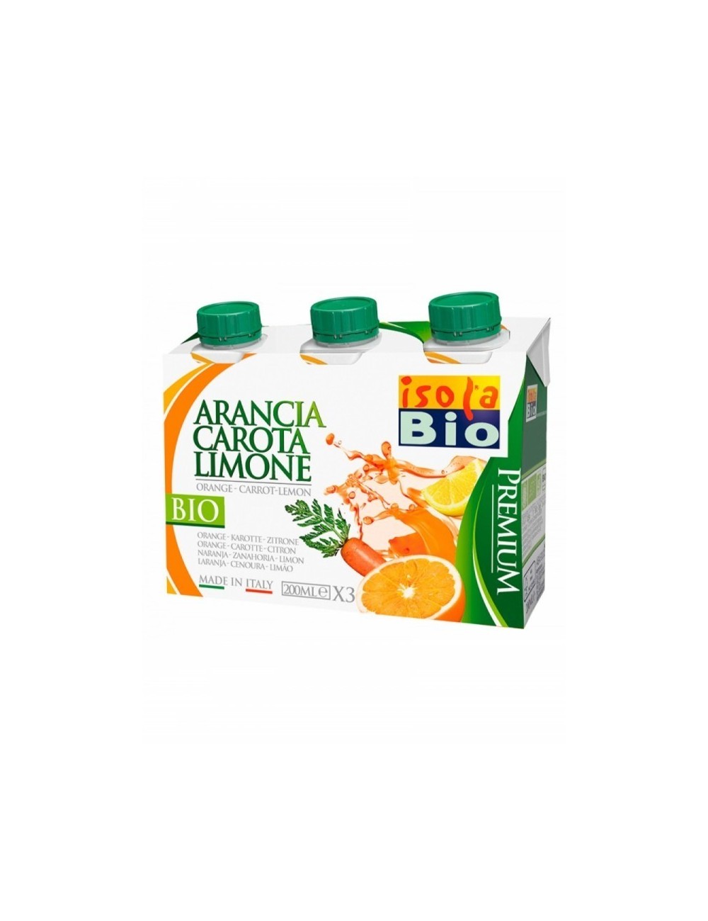 Ingredientes: agua, zumo de naranja* 35%, sirope de agave*, zumo de zanahoria* 8%, zumo de limón* 0,6%. (*)=De cultivo ecológico.